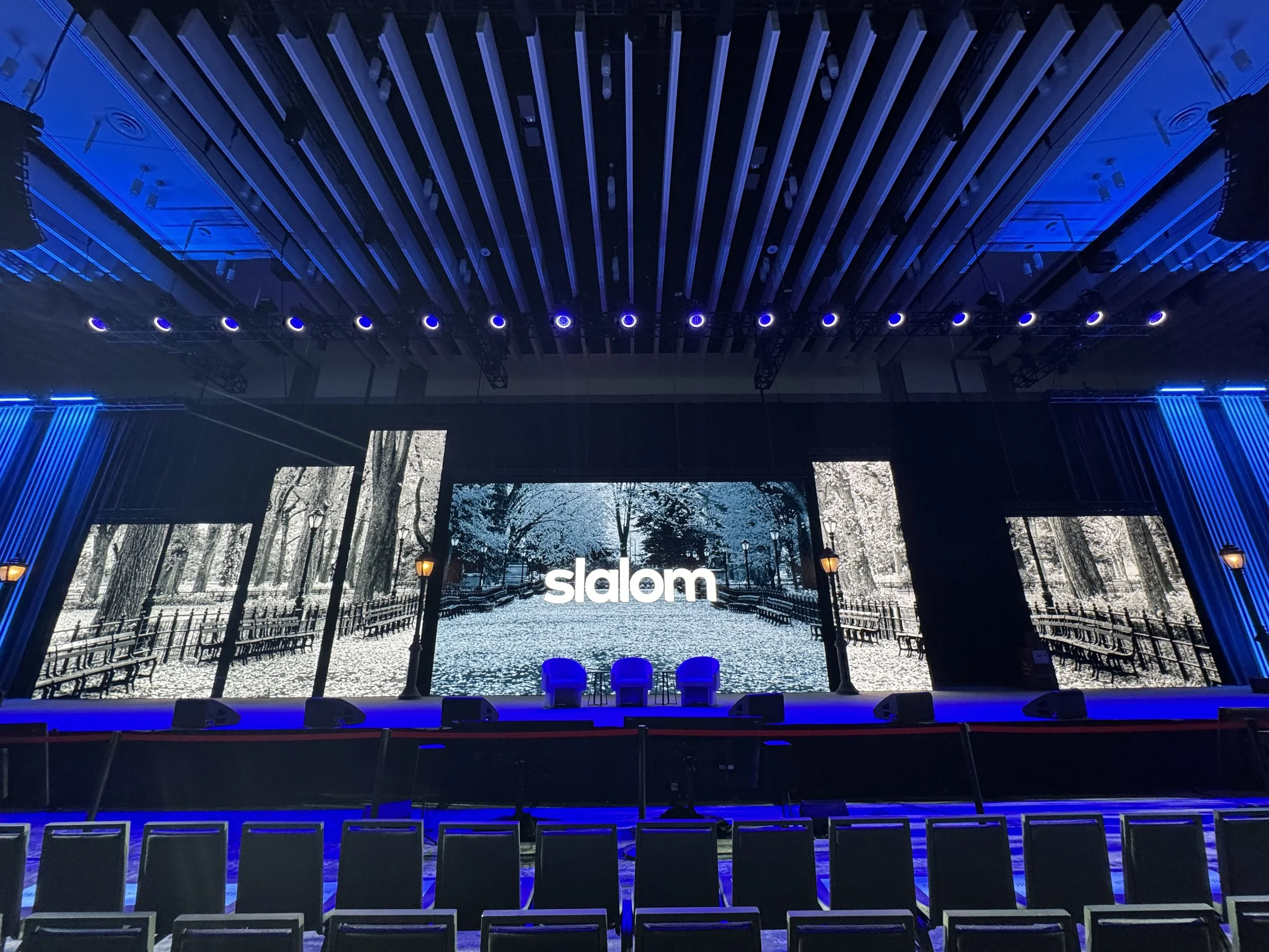 We’re always excited when Slalom calls to tell us about their plans for the next R4, because each year the number of attendees grows, and the venue and video screens get bigger and more technically complex. In 2024, we created an intro animation for the event that spread across three video walls in a large concert hall to kick off their three days of programming.